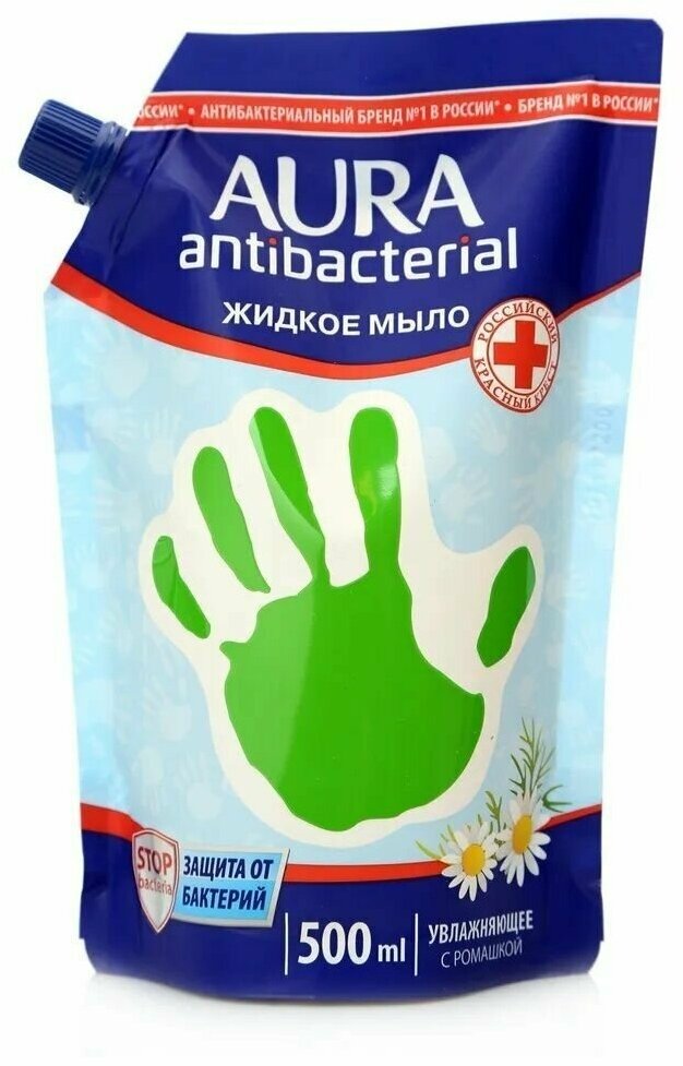 AURA антибактериальная Жидкое мыло с антибактериальным эффектом ромашка дой-пак 500мл