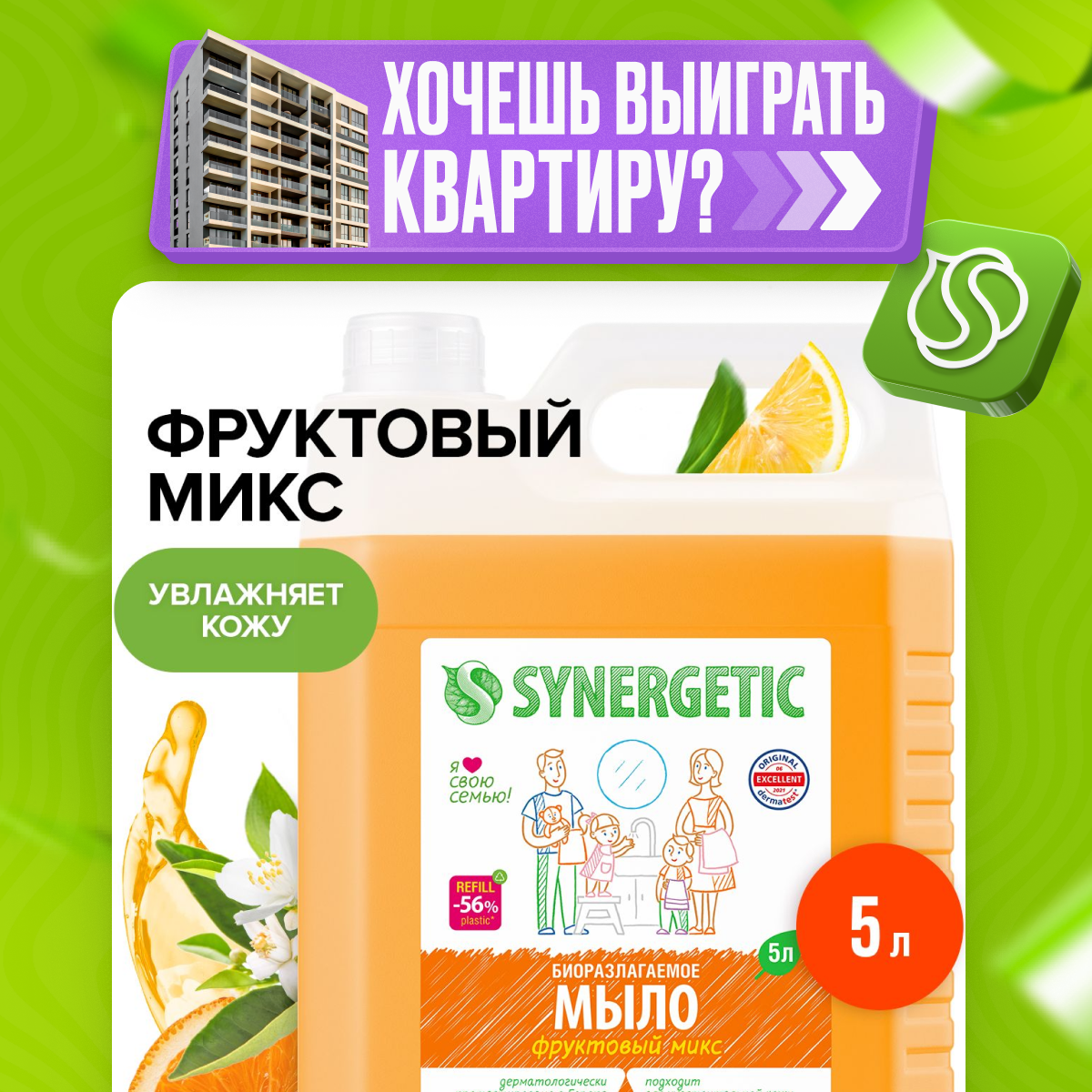 Мыло жидкое SYNERGETIC Фруктовый микс 5л 4623722258434