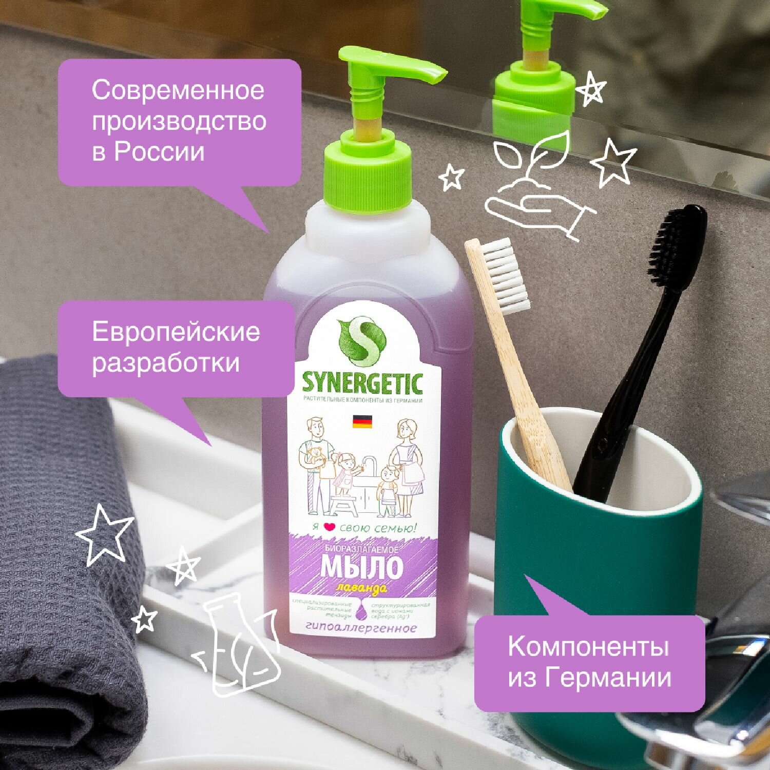 Набор биоразлагаемого жидкого мыла "SYNERGETIC Лаванда"