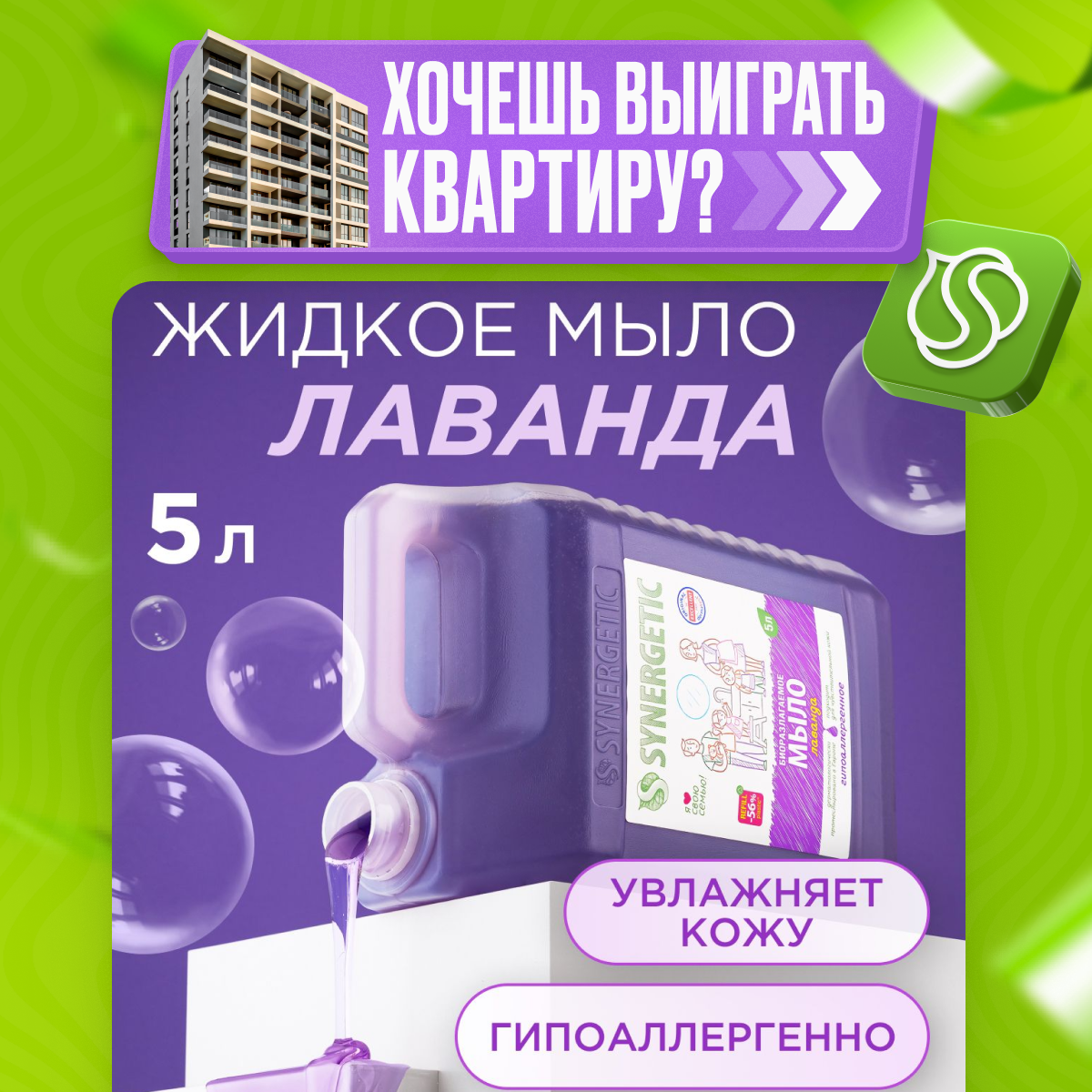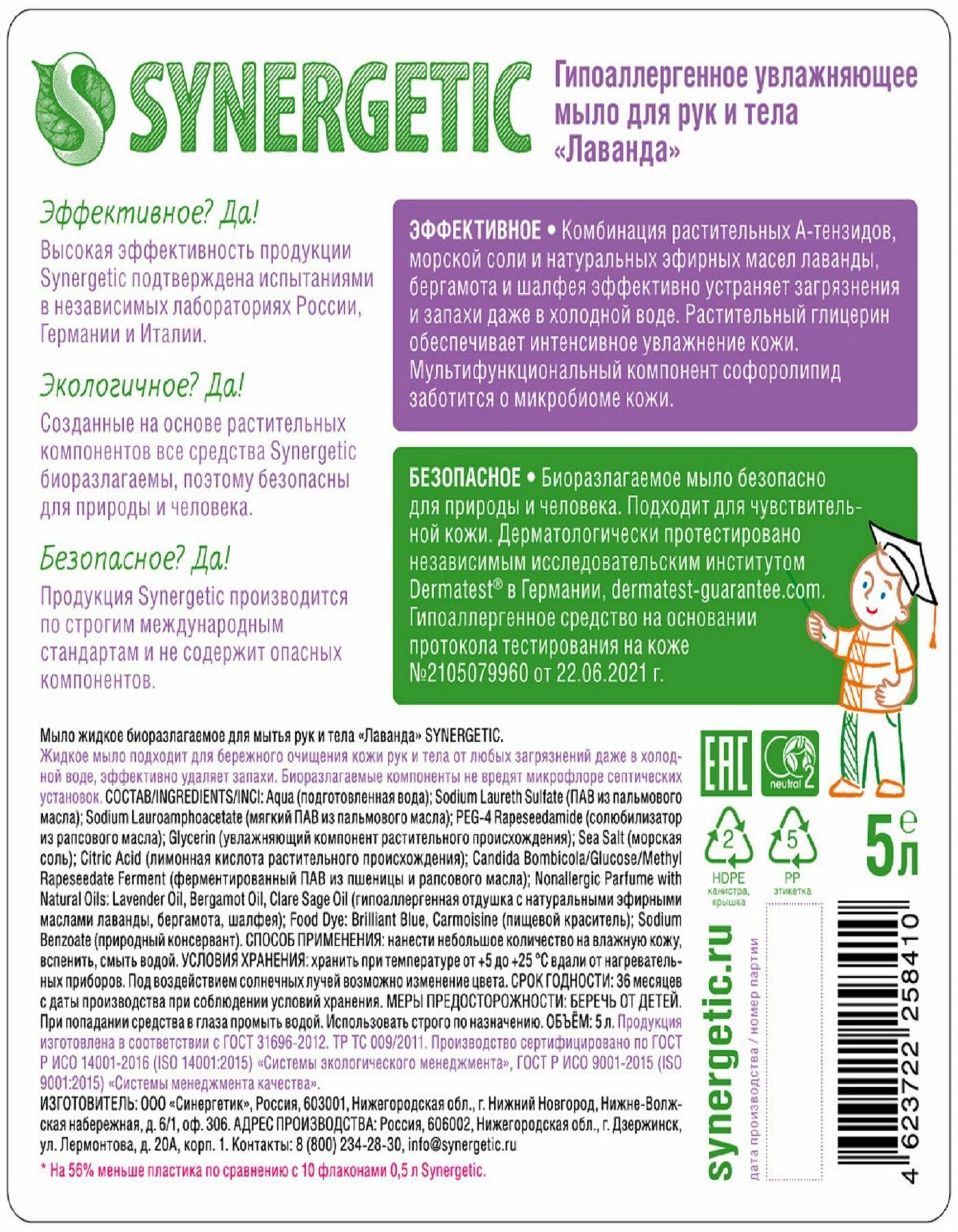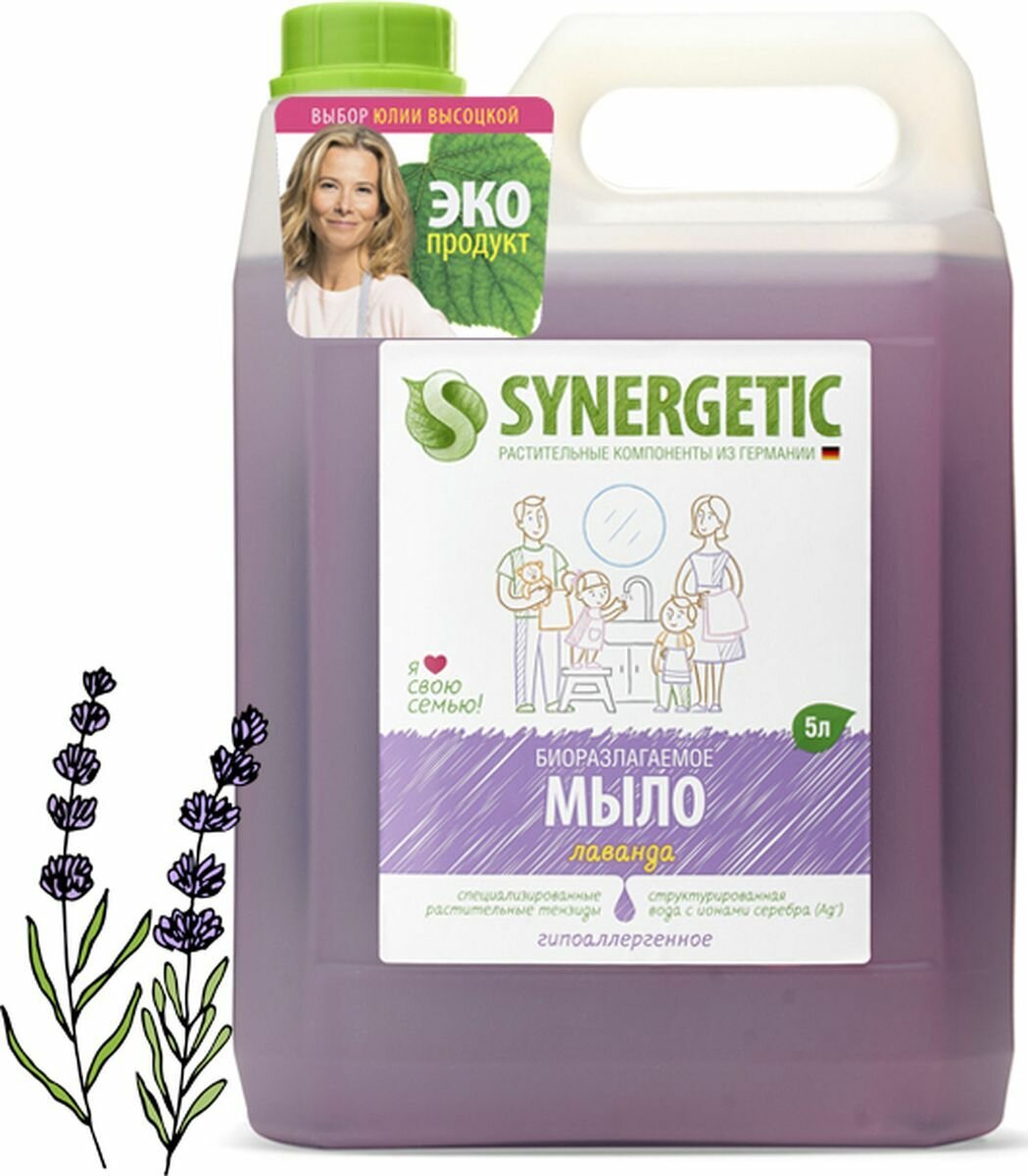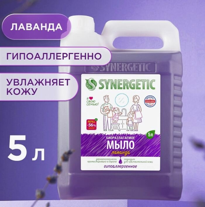 Жидкое мыло Synergetic "Лаванда", гипоаллергенное, 5 л Synergetic 3393347 .