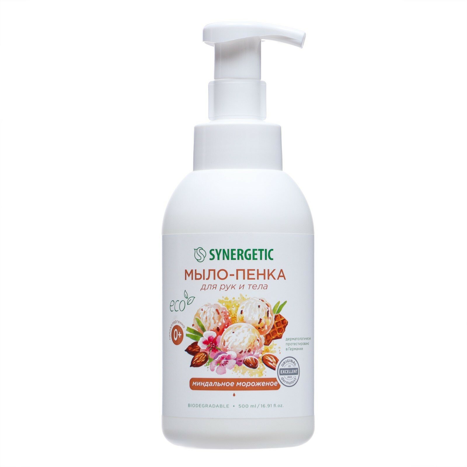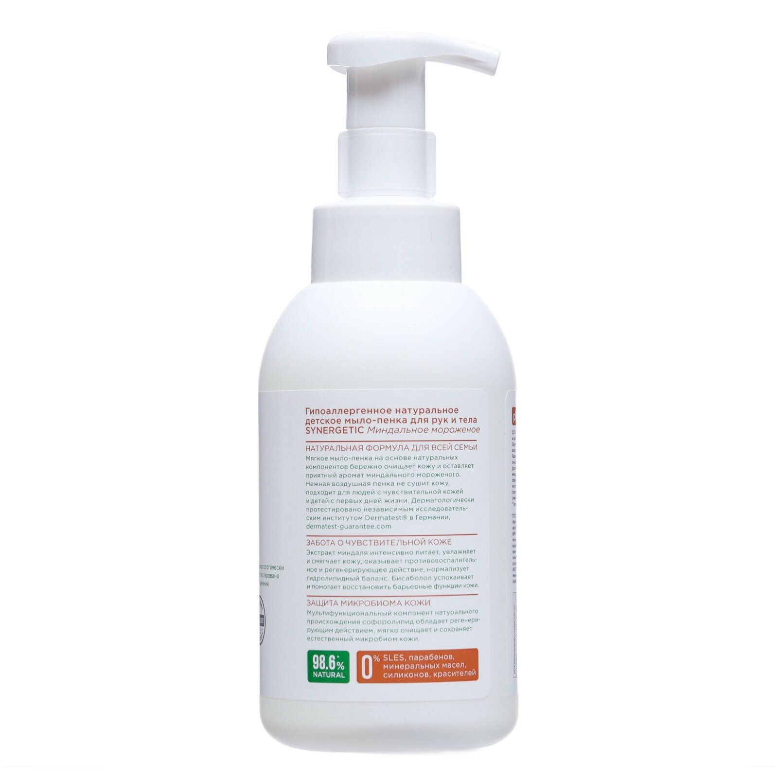 Купить Гипоаллергенное натуральное детское мыло-пенка для рук и тела Synergetic Миндальное мороженое, 500 мл