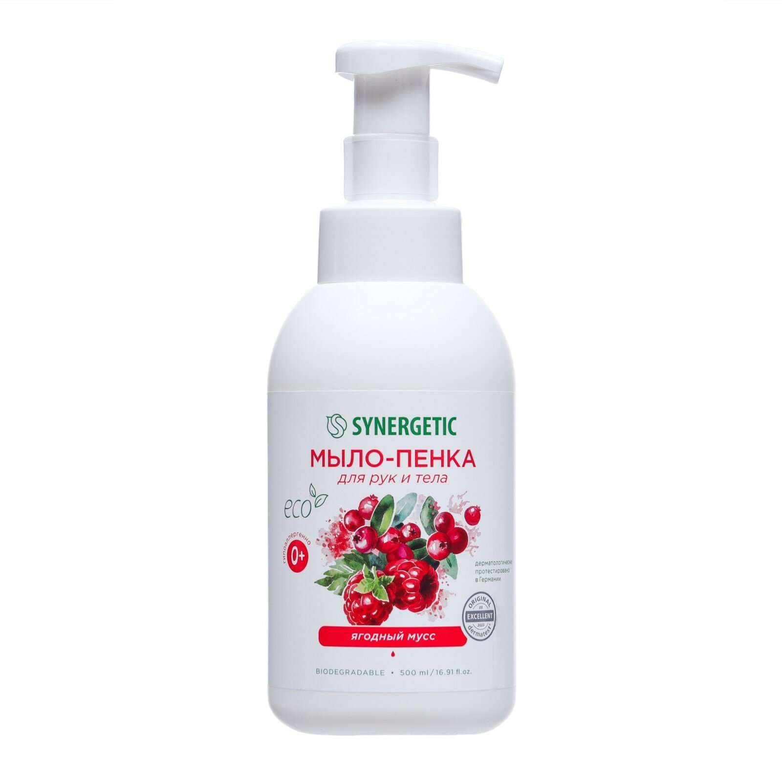Купить Мыло-пенка для рук и тела SYNERGETIC Ягодный мусс Гипоаллергенное натуральное детское 500 мл 4607971459347