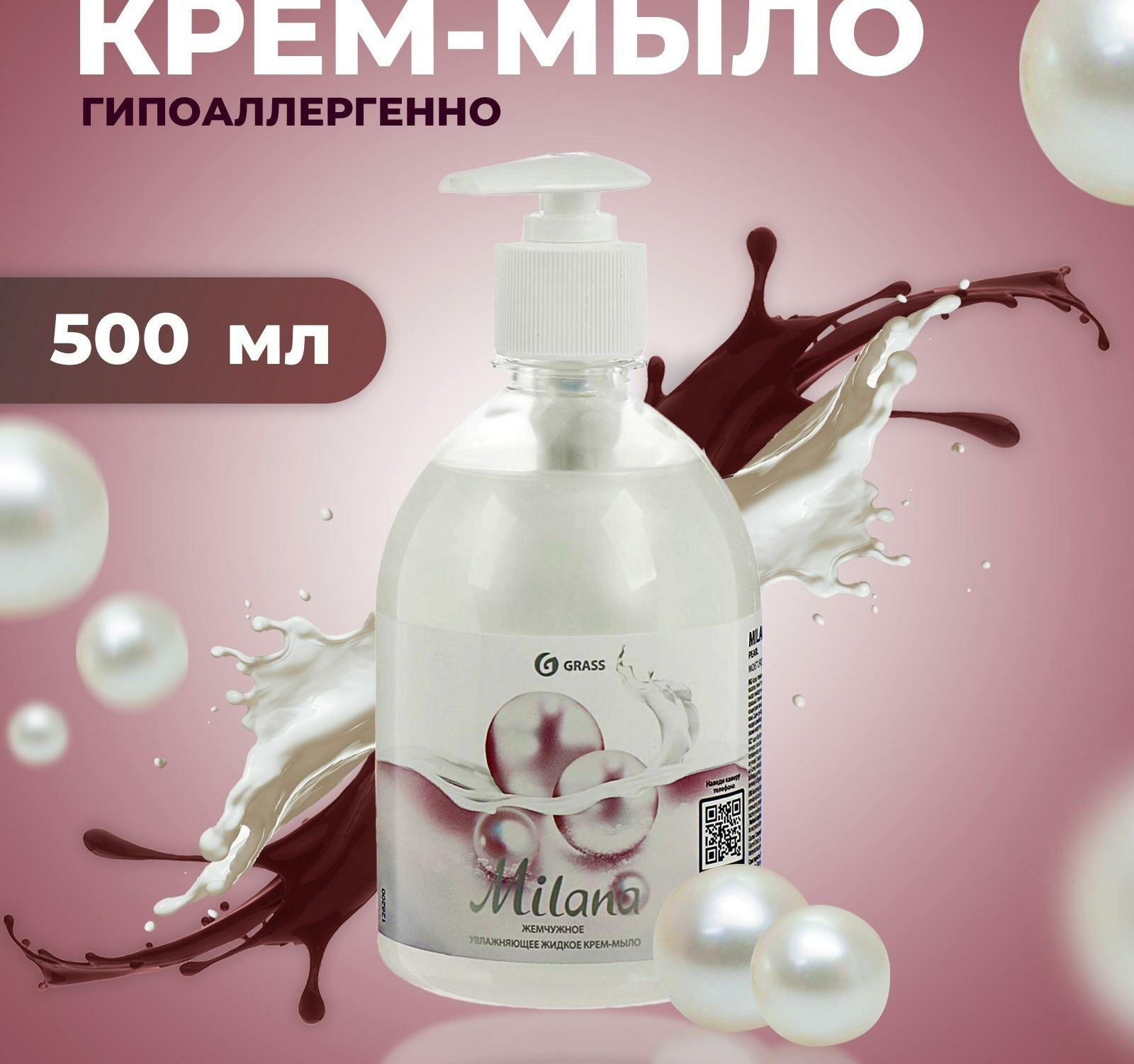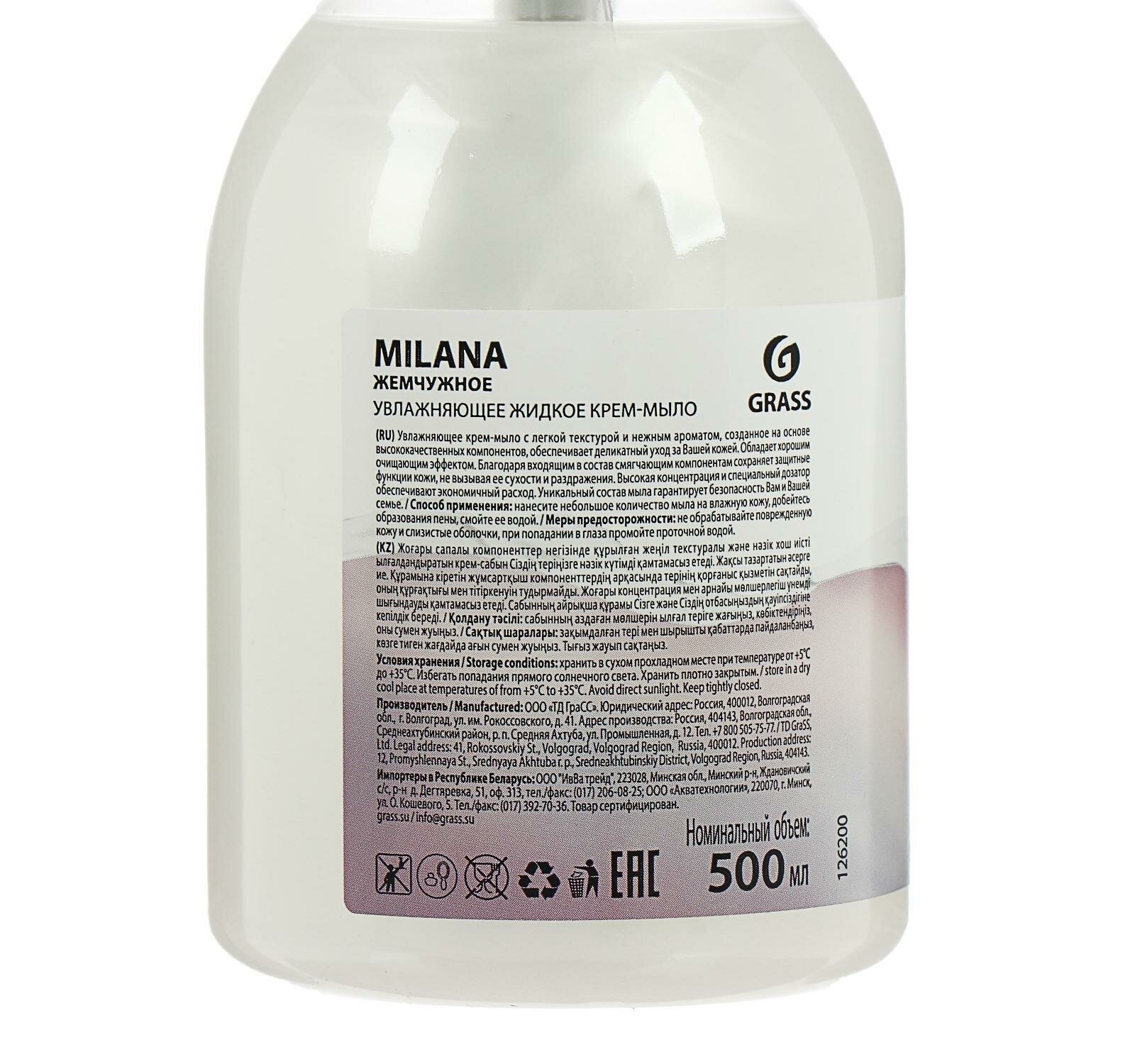 Жидкое крем-мыло GRASS Milana, 500 мл, жемчужное