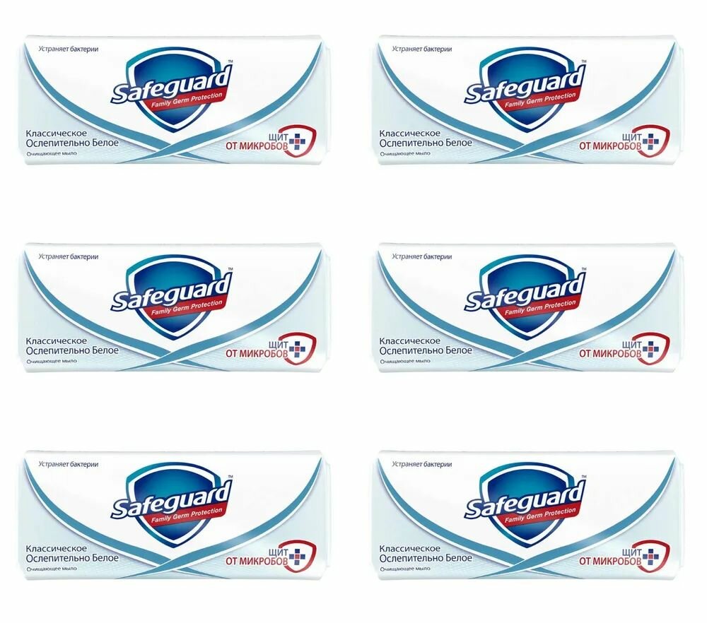 Мыло Safeguard классическое, ослепительно белое, 90 г, 6 шт