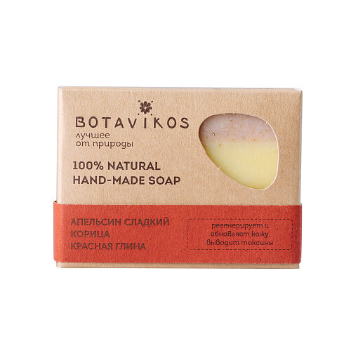 BOTAVIKOS Натуральное мыло ручной работы "Апельсин , корица и красная глина", 100 гр, BOTAVIKOS