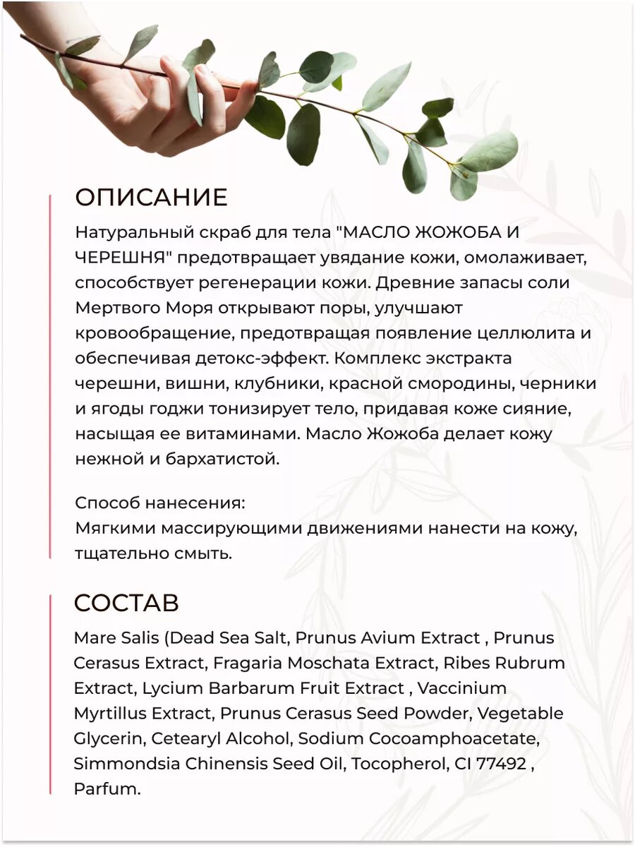 Натуральный скраб для тела "Масло жожоба и черешня", 250 мл