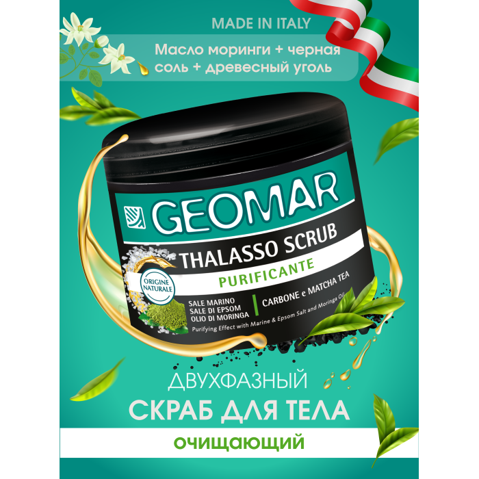 Купить Geomar Очищающий талассо-скраб Детокс для тела с черной солью и древесным углем 600 гр