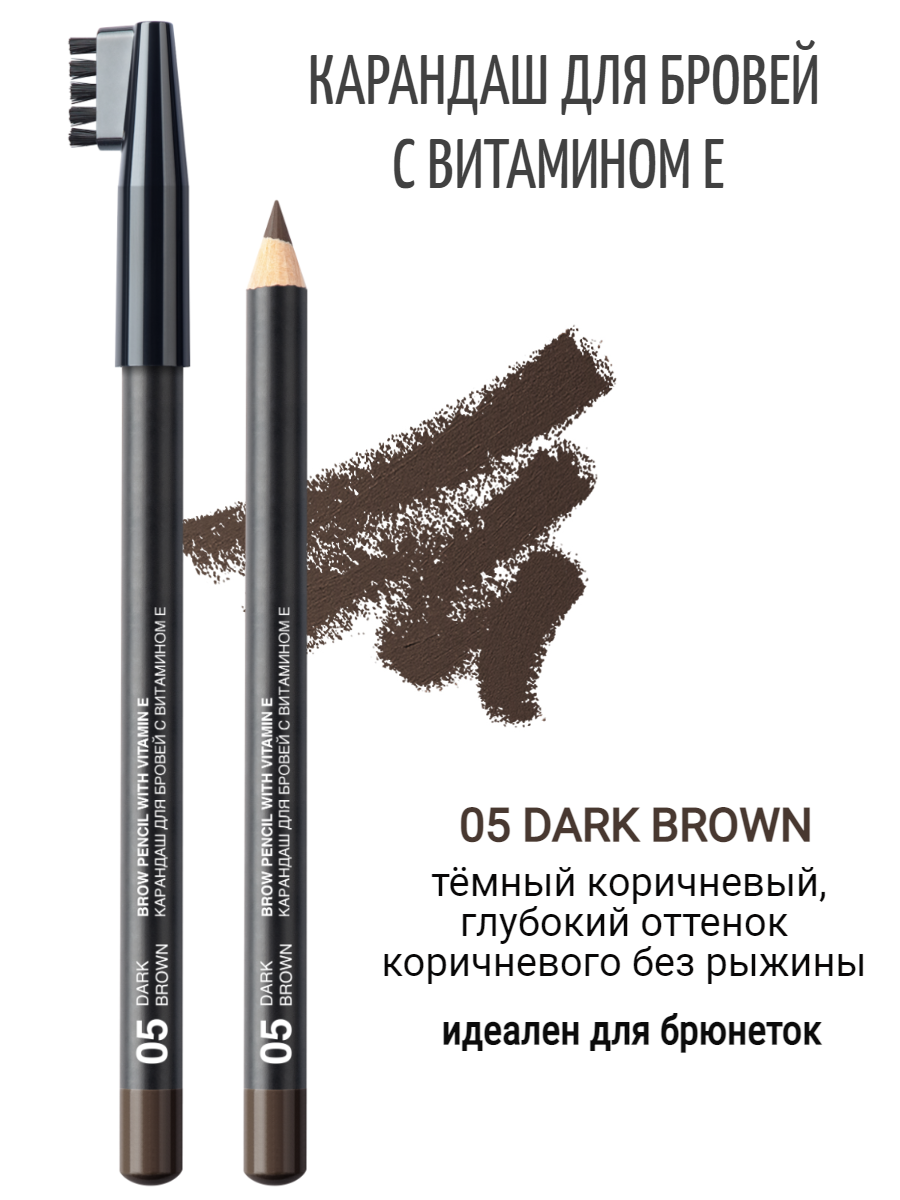 Купить RELOUIS Карандаш для бровей с витамином Е, тон 05 DARK BROWN