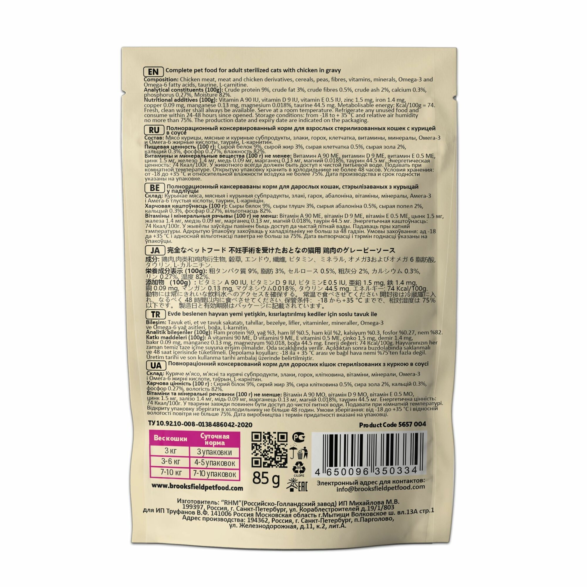 Купить Корм для кошек стерилизованных влажный BROOKSFIELD (Бруксфилд) Sterilized/Light (пауч) 12 шт - 85 г, Курица в соусе