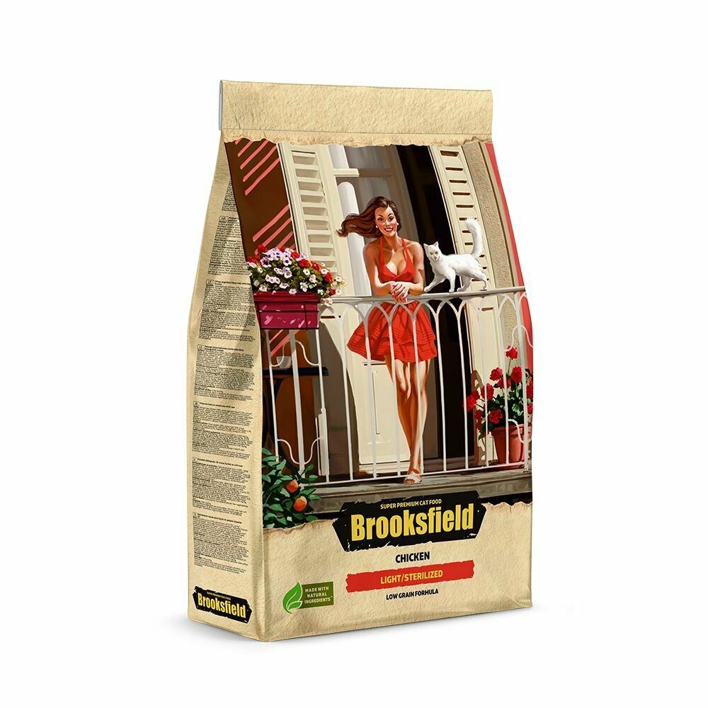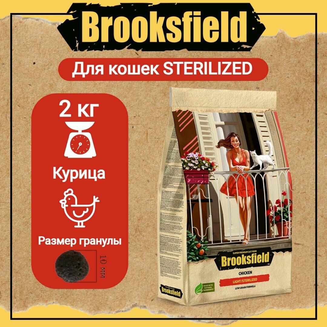 Brooksfield Adult Cat Light/Sterilized Chicken, корм для cтерилизованных кошек, облегченный, курица и рис, 2 кг