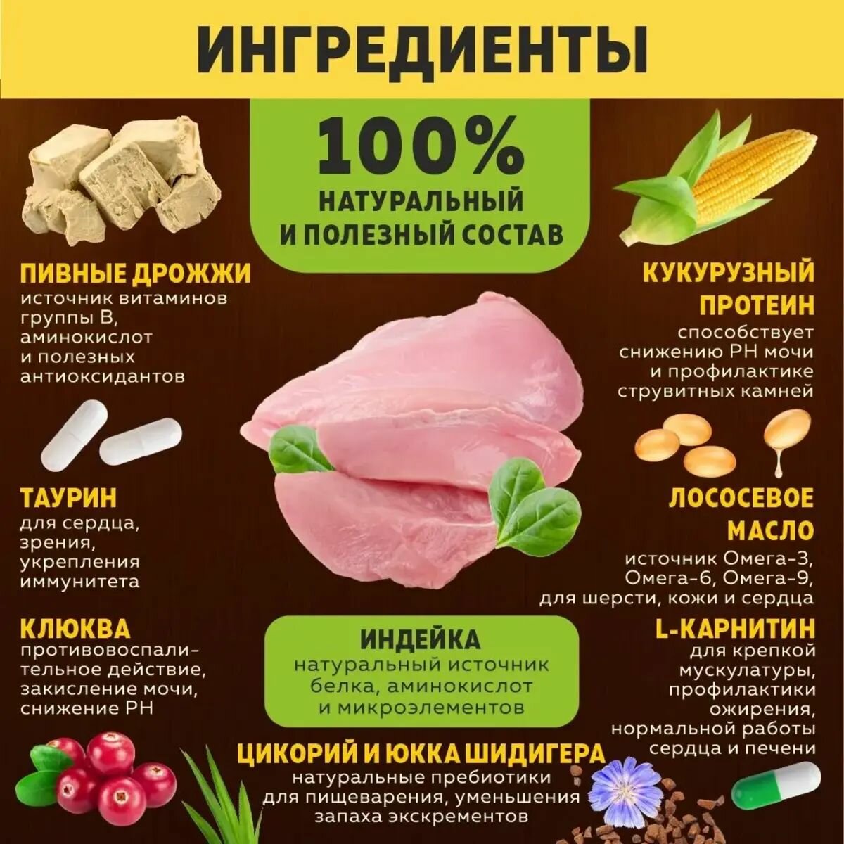 Состав, без отдушек Состав приближен к классу холистик-кормов, что очень радует. Но, к сожалению, мы кормим нашего котика и влажным и сухим кормом, а предпочтение он отдаёт корму влажному. Поэтому 2х килограммовой упаковки нам хватает на два-три месяца, так как бруксфилд он кушает в отдельный приём пищи, когда уж совсем голодный. Хотя, у наших родственников котик его сметает с тарелки.? Вот почему все зависит от индивидуального и правильного подбора питания для каждого питомца. ? ??? |
