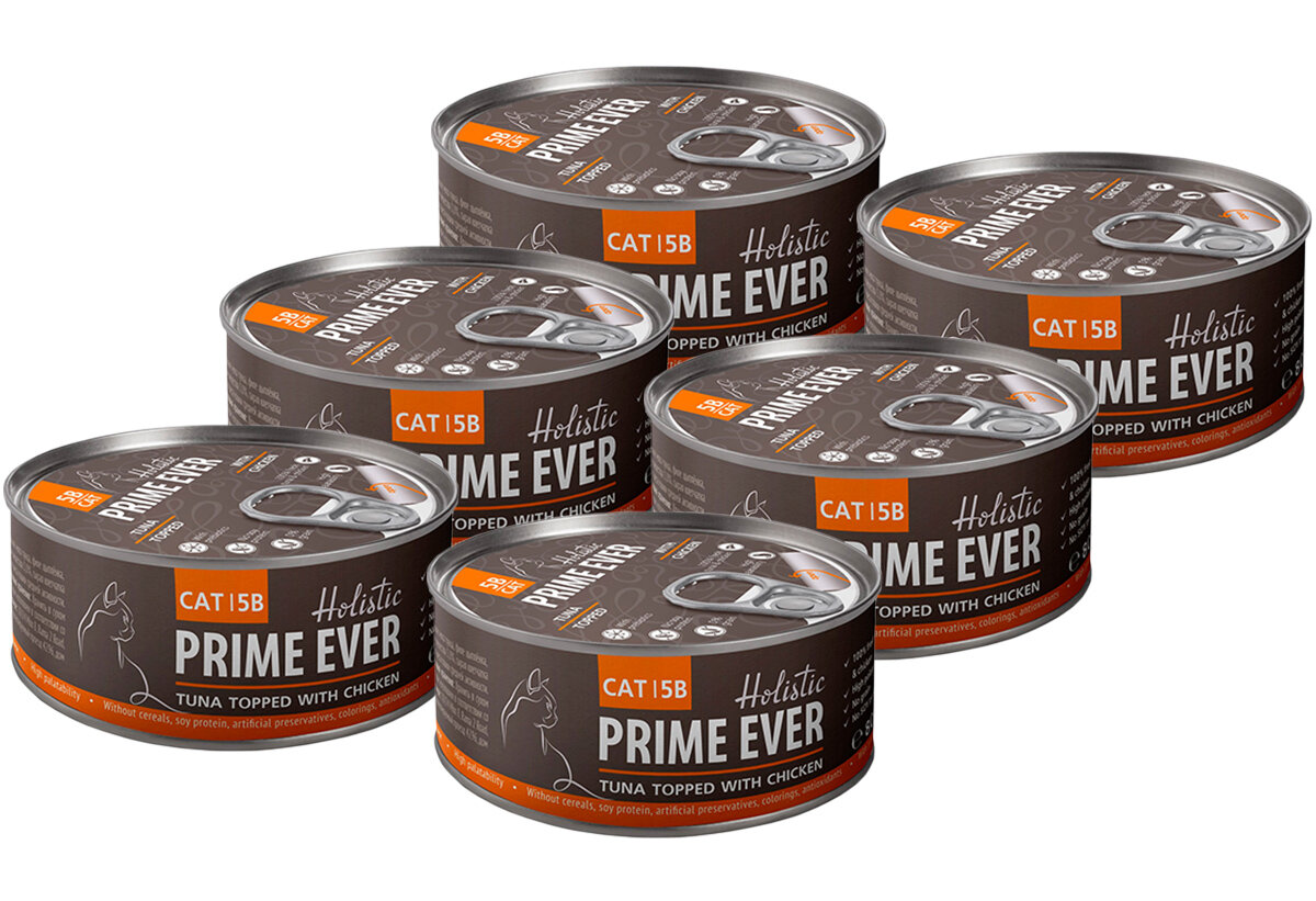 Купить Влажный корм для кошек, тунец с цыпленком в желе, холистик, Prime Ever, упаковка 6 шт х 80 г