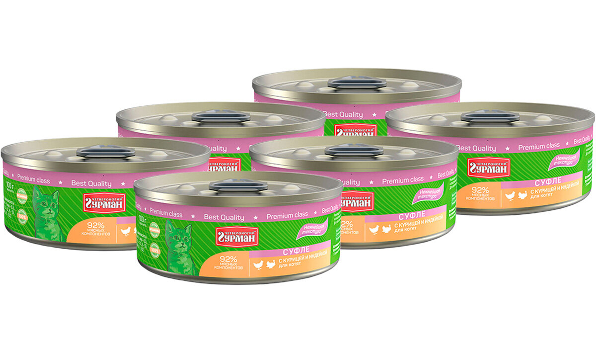 Купить Четвероногий гурман суфле для котят с курицей и индейкой банка 100 гр NEW 100 гр х 6 шт