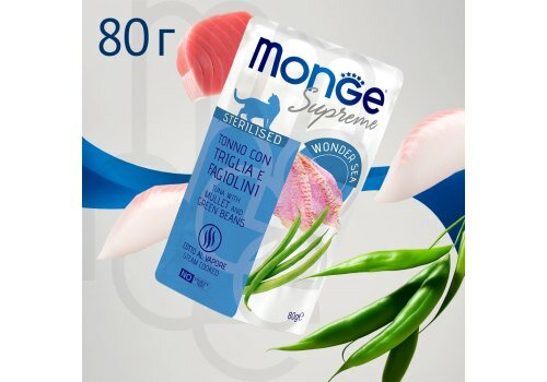 Влажный корм Monge Supreme sterilized cat для стерилизованных кошек из тунца с киноа и зелёной фасолью, паучи 80 г х 30шт.