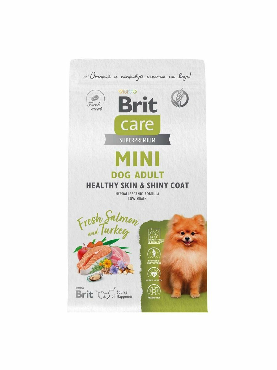 Сухой корм для собак мини пород Brit Care Adult Healthy Skin&Shiny Coat с лососем и индейкой 1,5кг