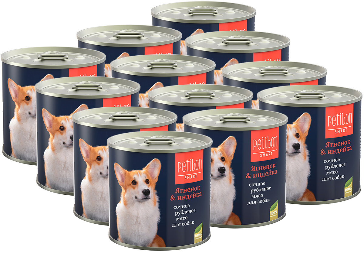 Корм консервированный PETIBON SMART для собак рубленое мясо с ягненком и индейкой упаковка 24 шт. (100 гр)