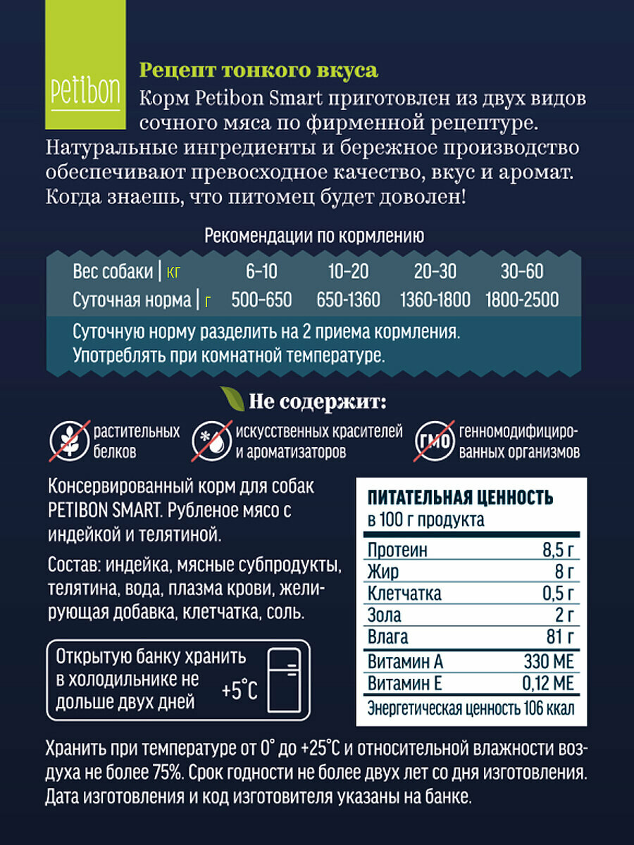 Petibon Smart Рубленое мясо д/собак с индейкой и телятиной 100 гр