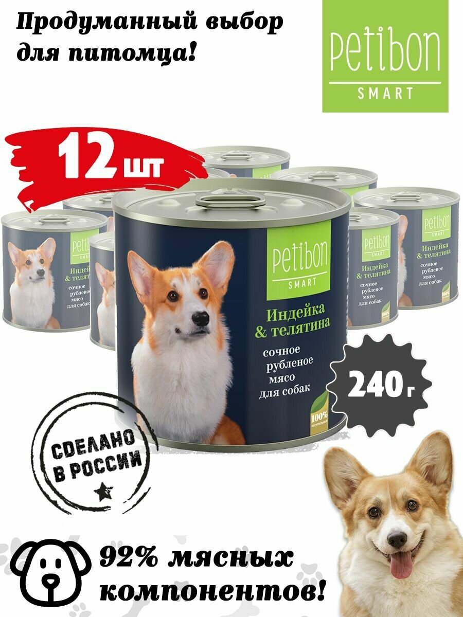 Купить Корм для собак влажный Petibon Smart, Рубленое мясо с индейкой и телятиной, 240 г х 12 шт.