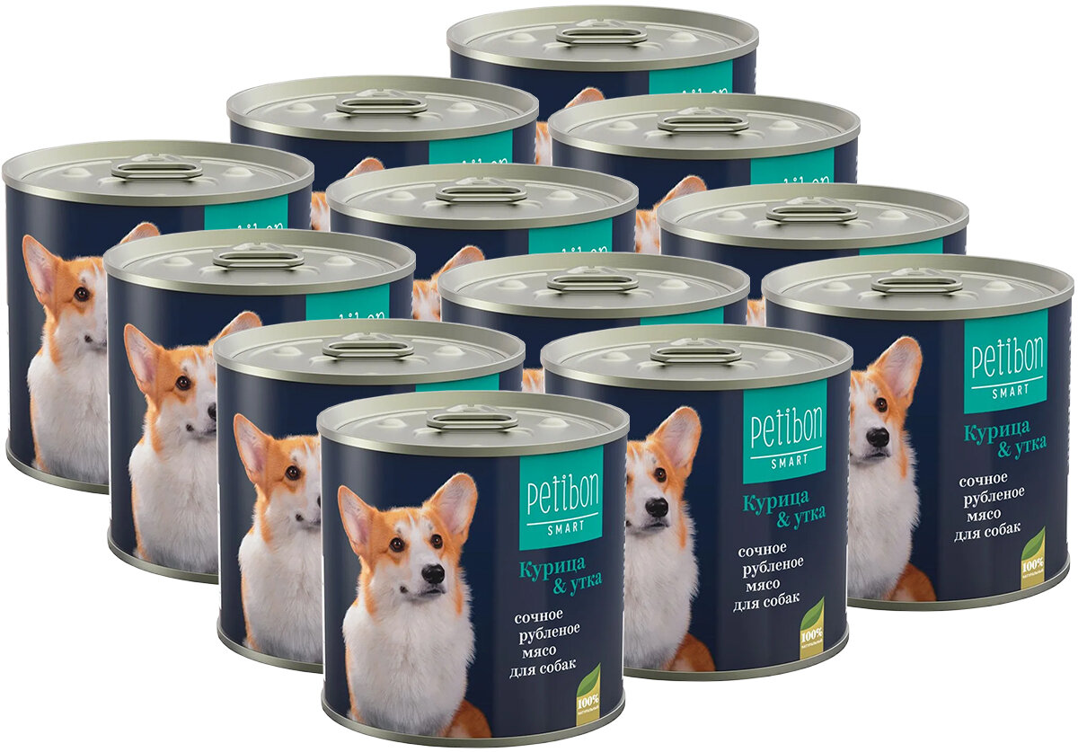 Корм консервированный для собак Petibon Smart для собак "Рубленое мясо с курицей и уткой", 100 г х 24 шт.