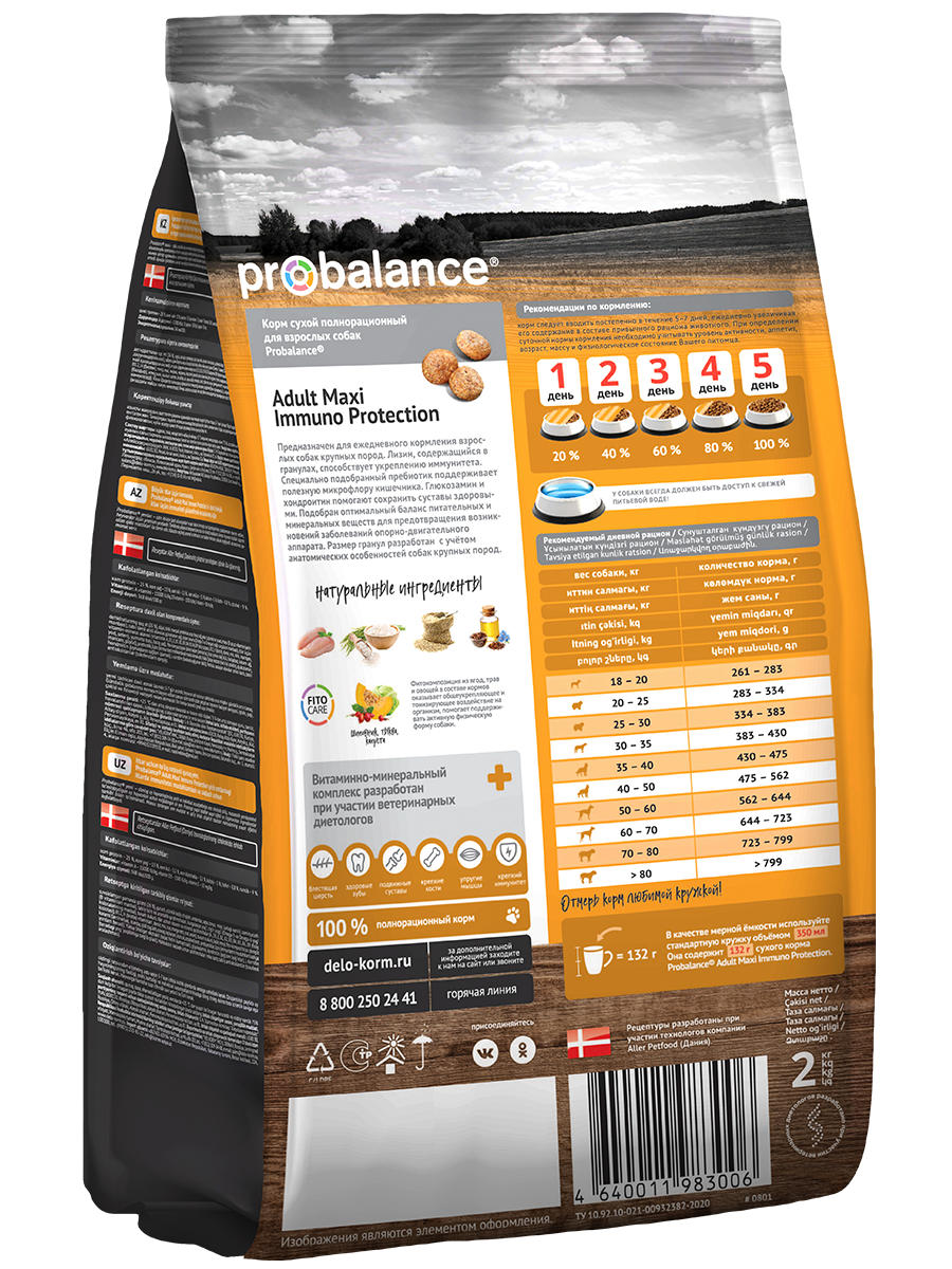 Probalance Сухой корм для взрослых собак крупных пород, укрепление и поддержание иммунитета