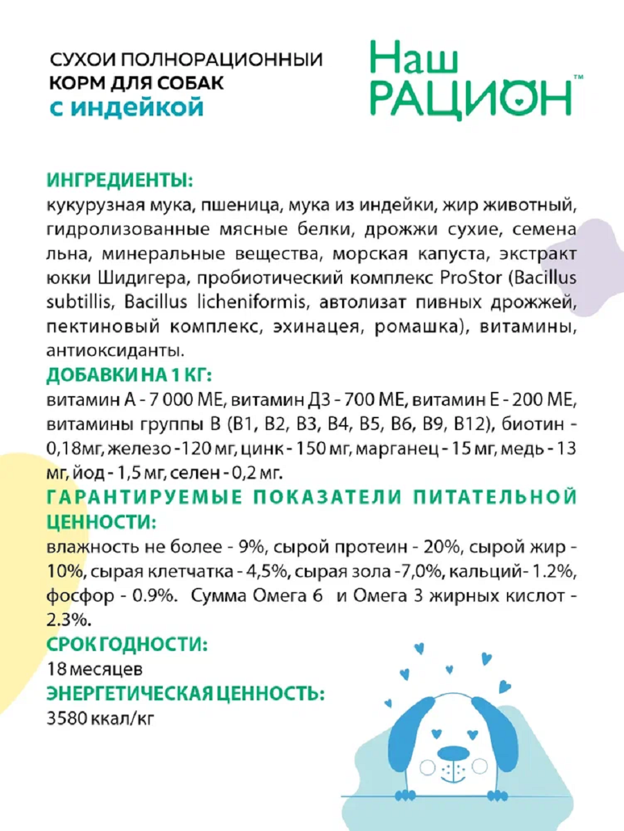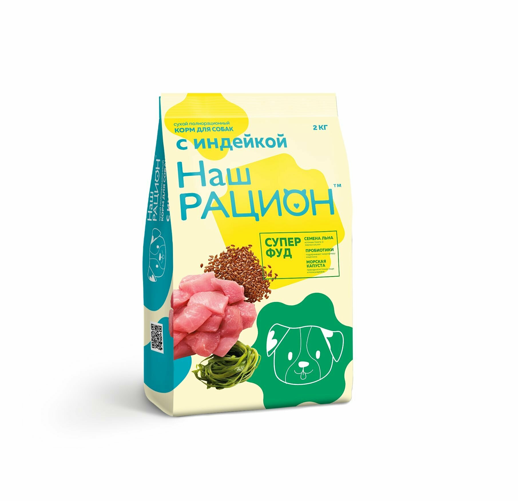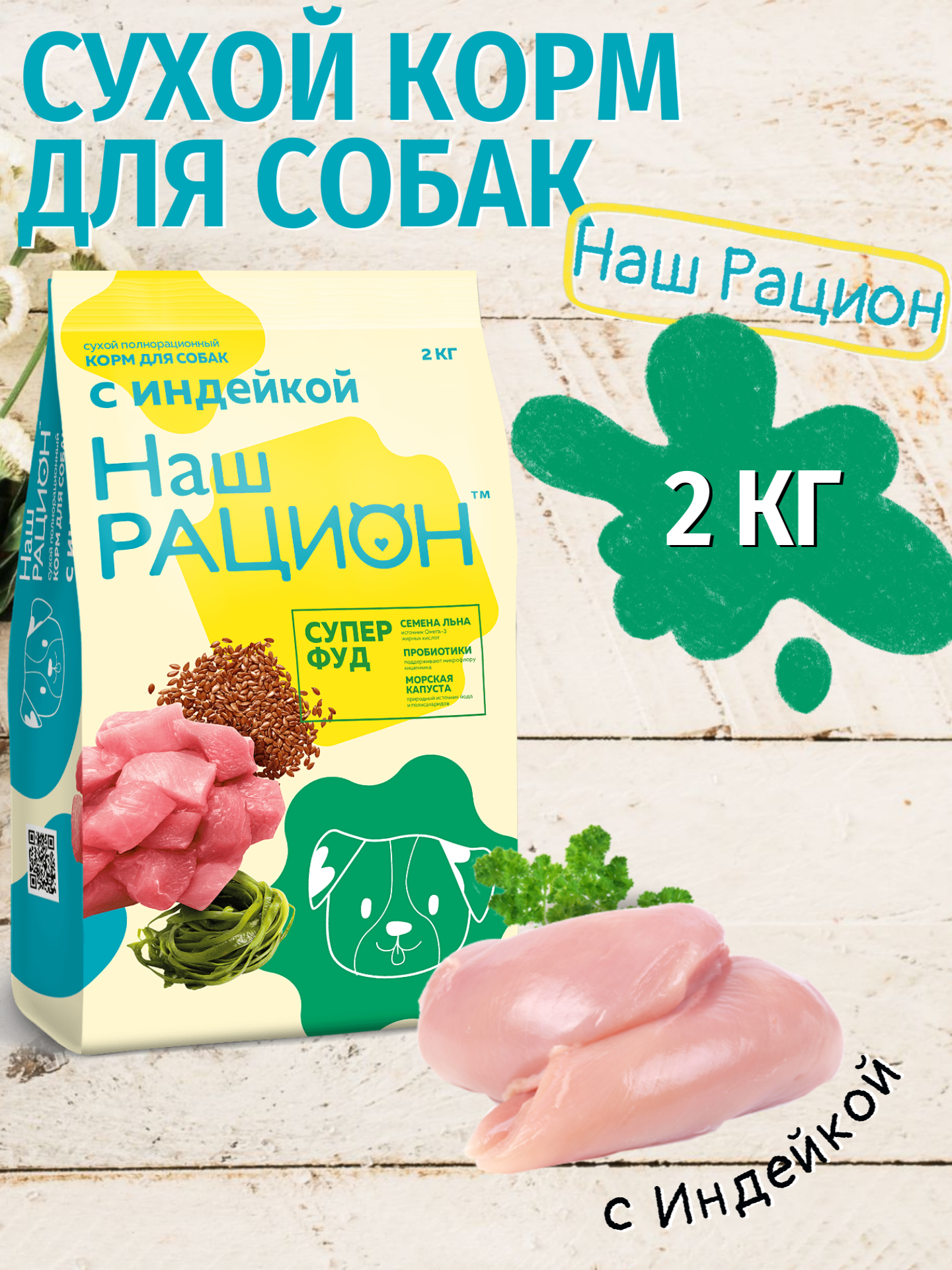 Купить Сухой полнорационный корм " Наш рацион " для взрослых собак с индейкой 1 уп. х 1 шт. х 2 кг