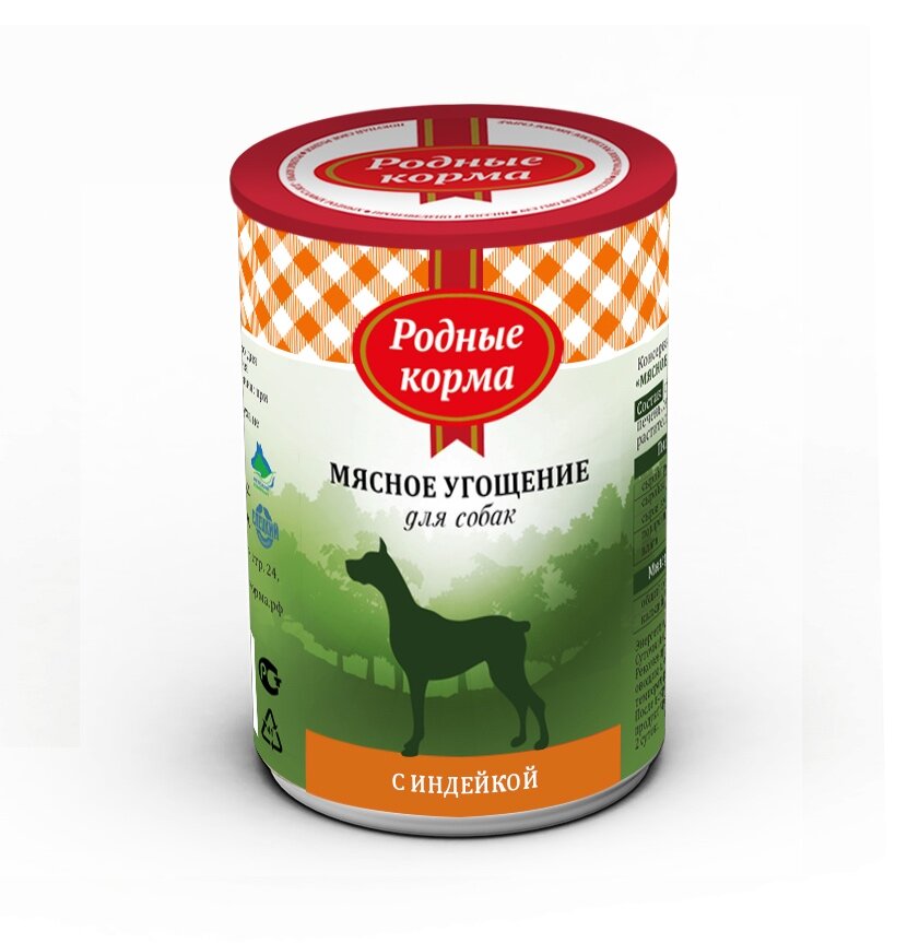 Консервы родные корма Мясное угощение для собак с индейкой 340г 64593