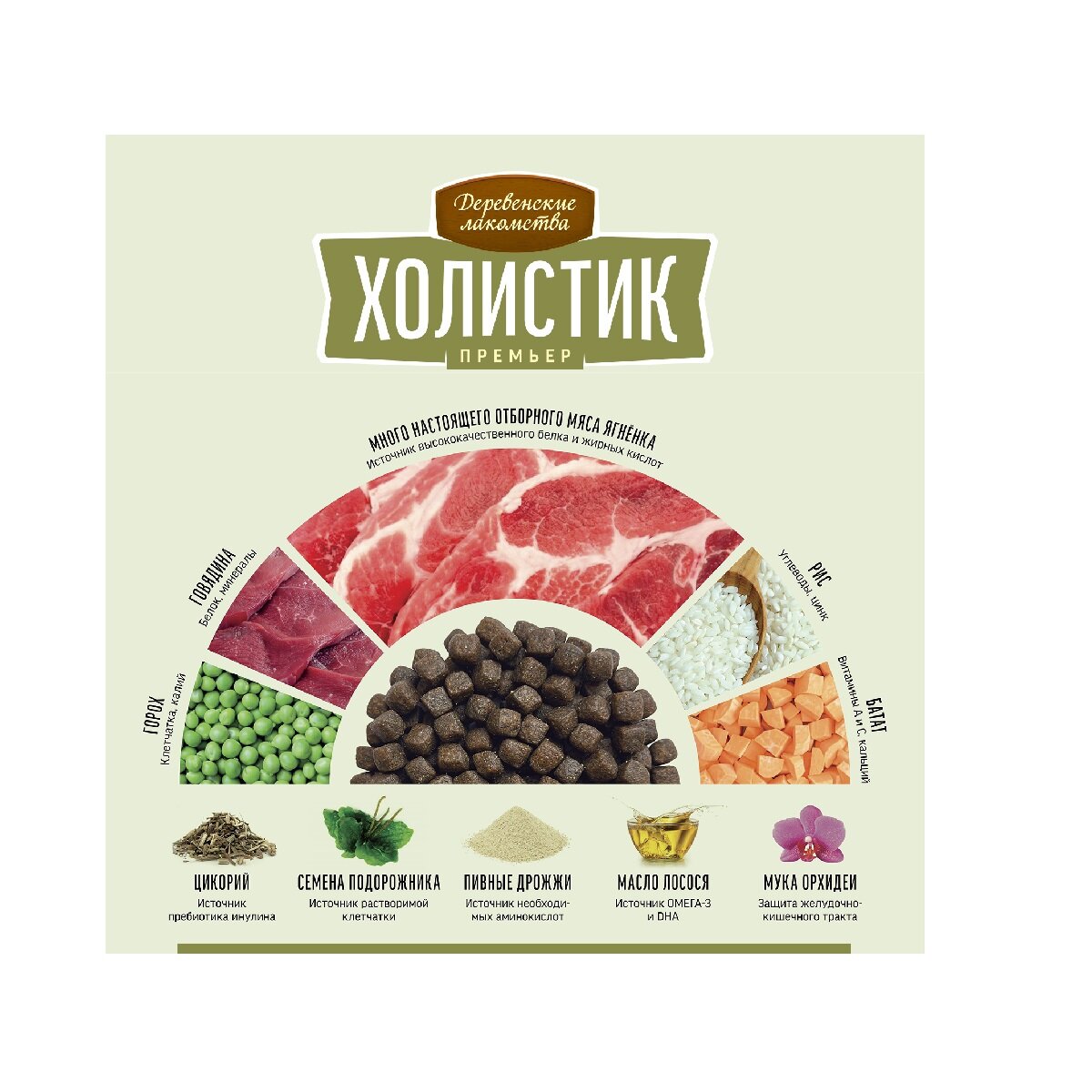 Деревенские лакомства Холистик Премьер для собак мини-пород Ягненок с рисом 1кг