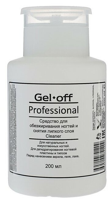 Средство для обезжиривания ногтей и снятия липкого слоя Gel-off Cleaner Professional, помпа, 200 мл, "Gel*off"