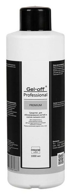 Средство для обезжиривания ногтей и снятия липкого слоя Gel*off Premium Professional,1000 мл 45983./В упаковке шт: 1
