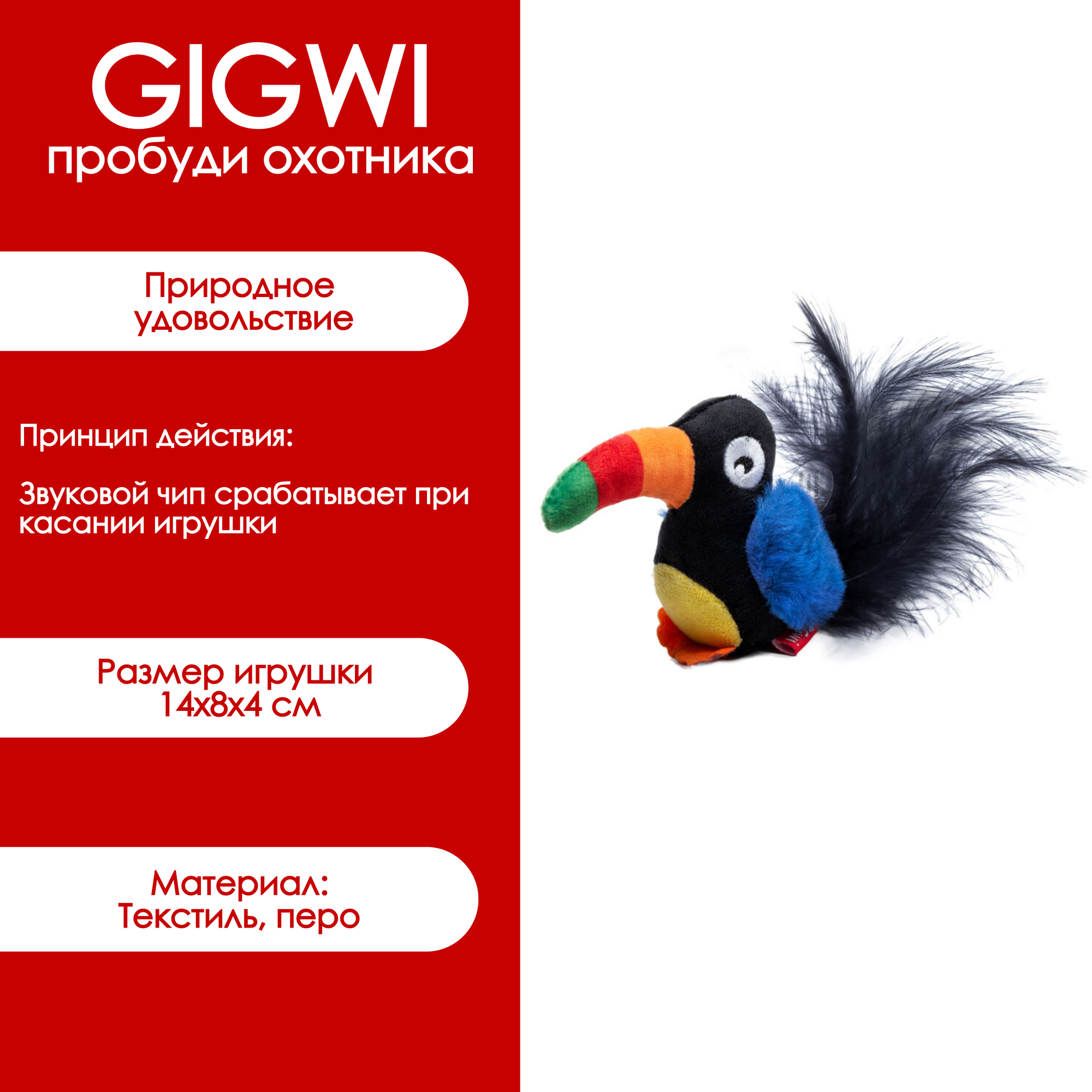 GIGWI Игрушки для кошек Тукан со звуковым чипом, 10см (75463)