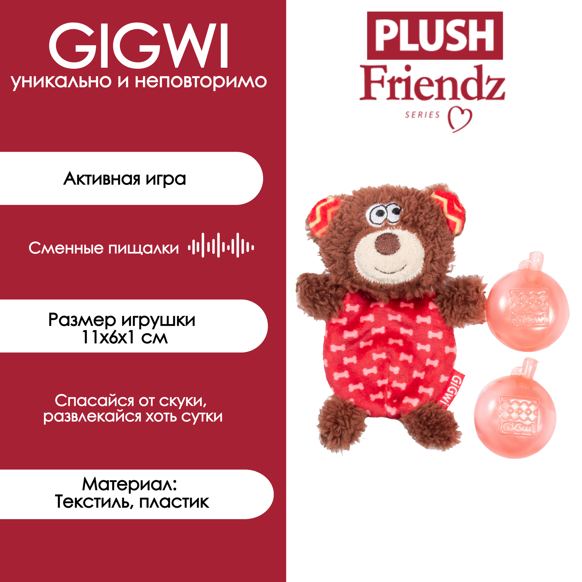 Игрушка для собак GiGwi Plush Friendz Медведь (75303), красный/коричневый, 1шт.