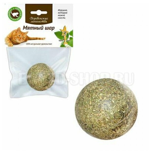 Деревенские лакомства Игрушка для кошек "Мятный шар" 15г пл/пак интересное: