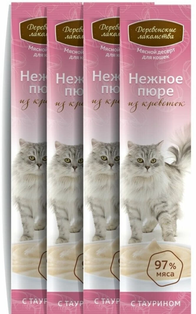 Деревенские лакомства "Нежное пюре из креветок" для кошек упаковка, 4 пакета по 10 гр