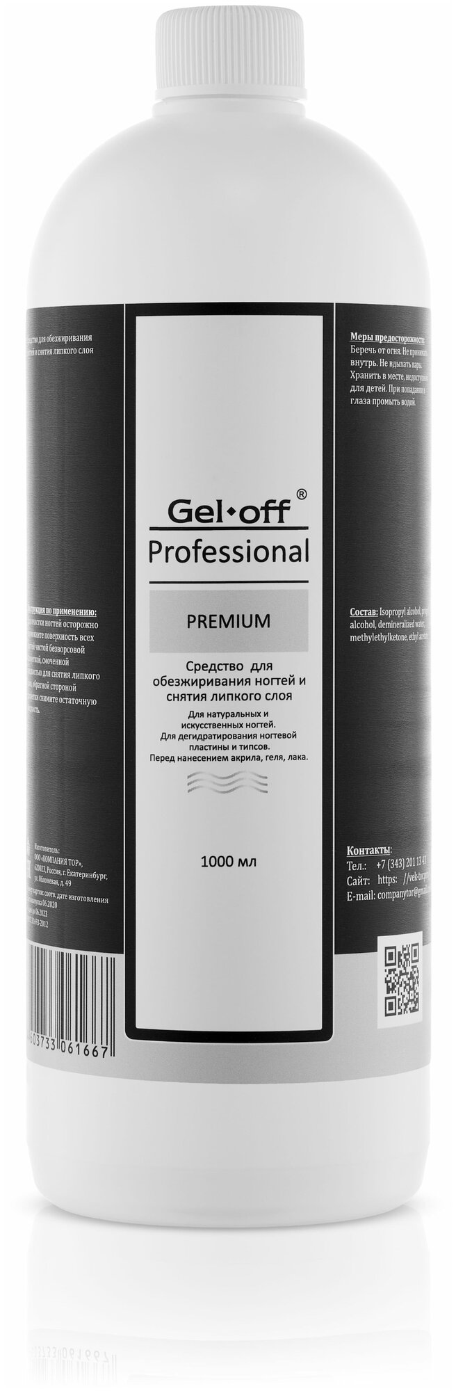 Средство для обезжиривания ногтей и снятия липкого слоя Gel*off Premium Professional,1000 мл 45983./В упаковке шт: 1