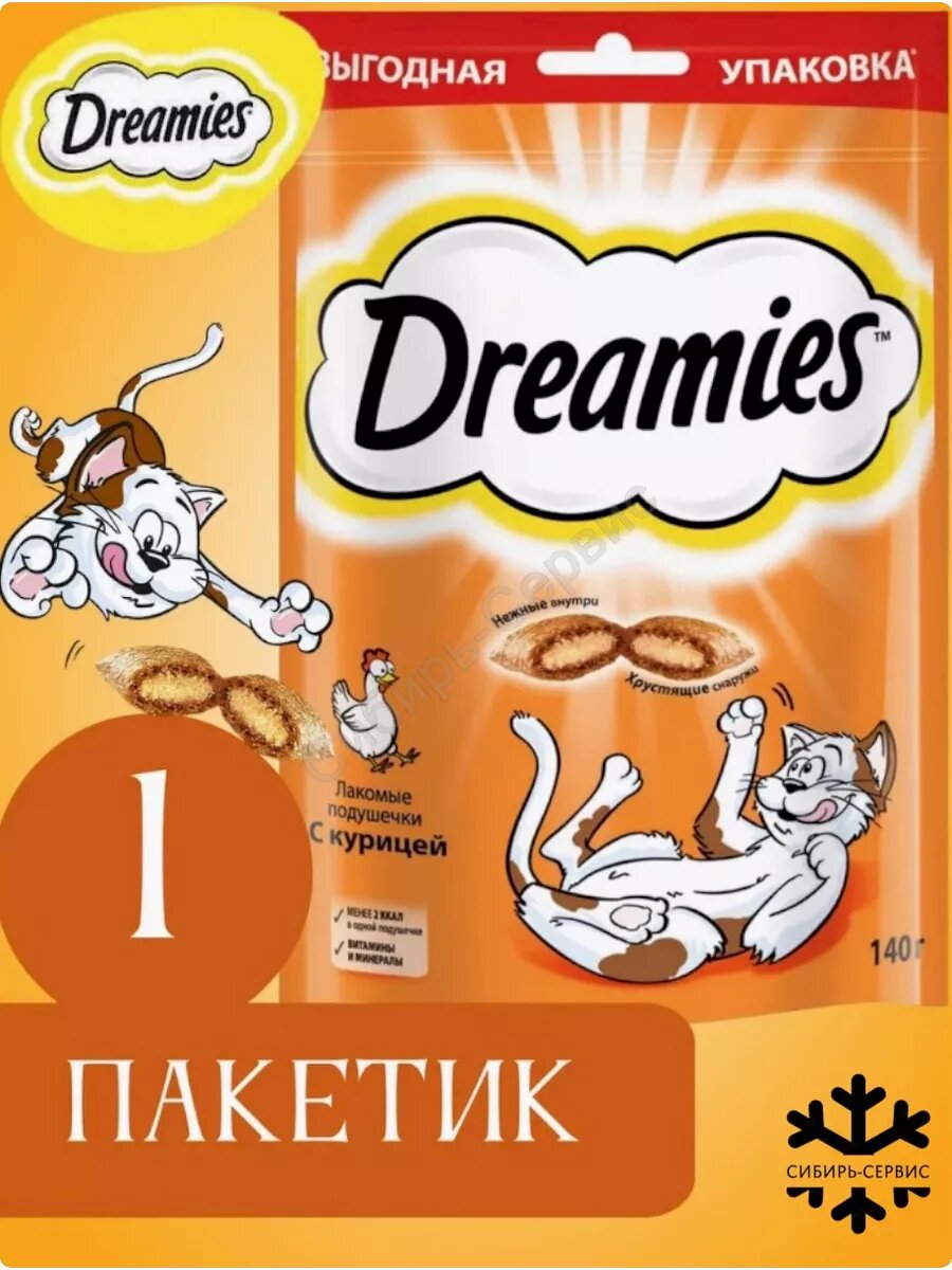 Dreamies лакомые подушечки с курицей для взрослых кошек и котов всех пород - 140 г