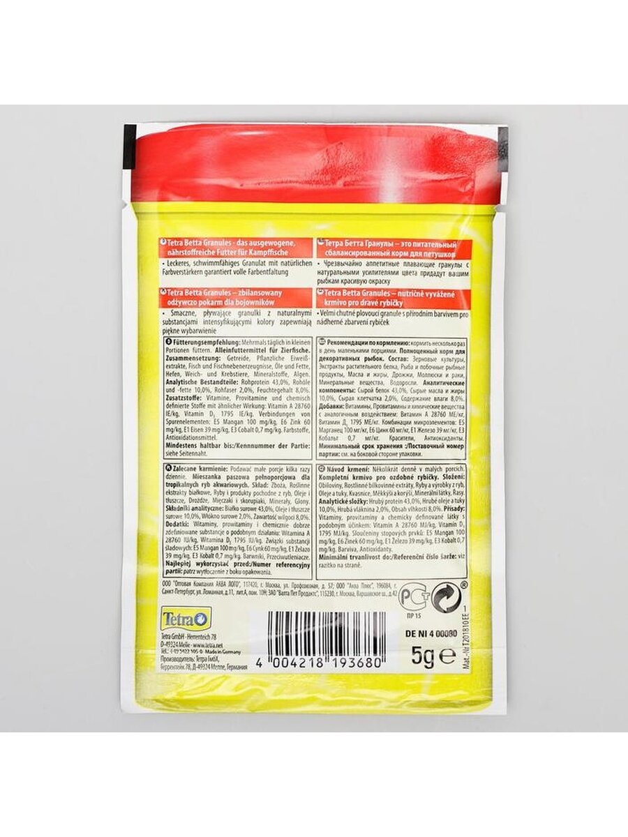 Tetra (корма) Корм для бойцовых рыб и других видов лабиринтовых, гранулы Betta Granules 193680, 0,005 кг, 36362