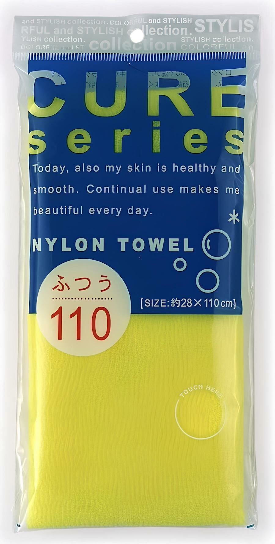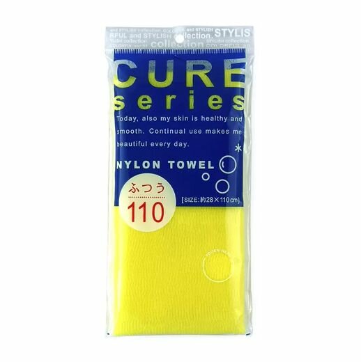 Cure nylon towel regular yellow мочалка для тела средней жесткости (жёлтая), 28х110 см