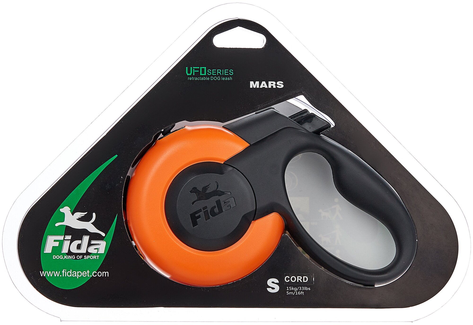 Fida Рулетка Mars для собак мелких пород до 15 кг, трос 5 м, оранжево-черная