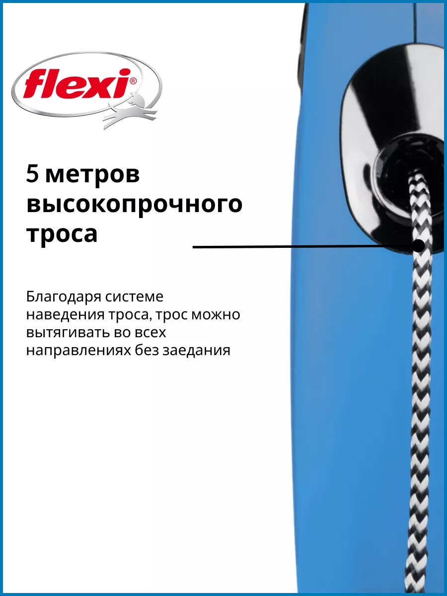 Рулетка Flexi New Classic M, 5 м, 20 кг, трос, синий