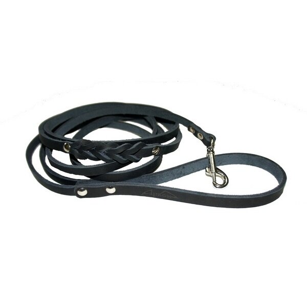 Поводок аркон кожаный плетение - косичка, импортный карабин черный для собак (250 см/ 8 мм)
