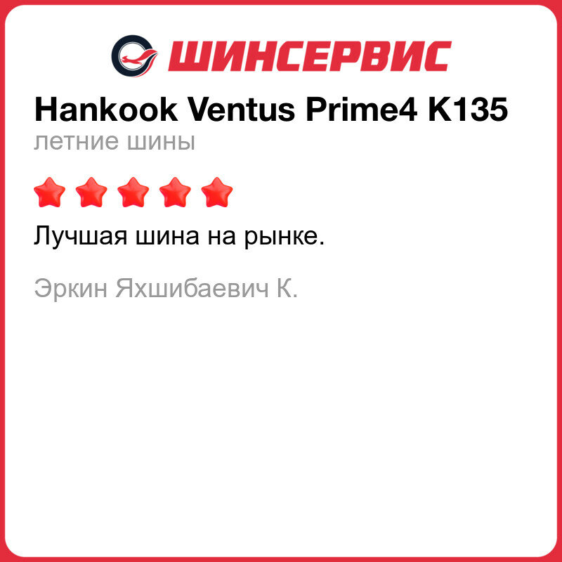 Ниже Вы можете прочитать отзывы на Летние шины Hankook Ventus Prime 4 K135 225/45 R17 91Y, ознакомится с подробными характеристиками, посмотреть интересные обзоры и фотографии на Летние шины Hankook Ventus Prime 4 K135 225/45 R17 91Y.
