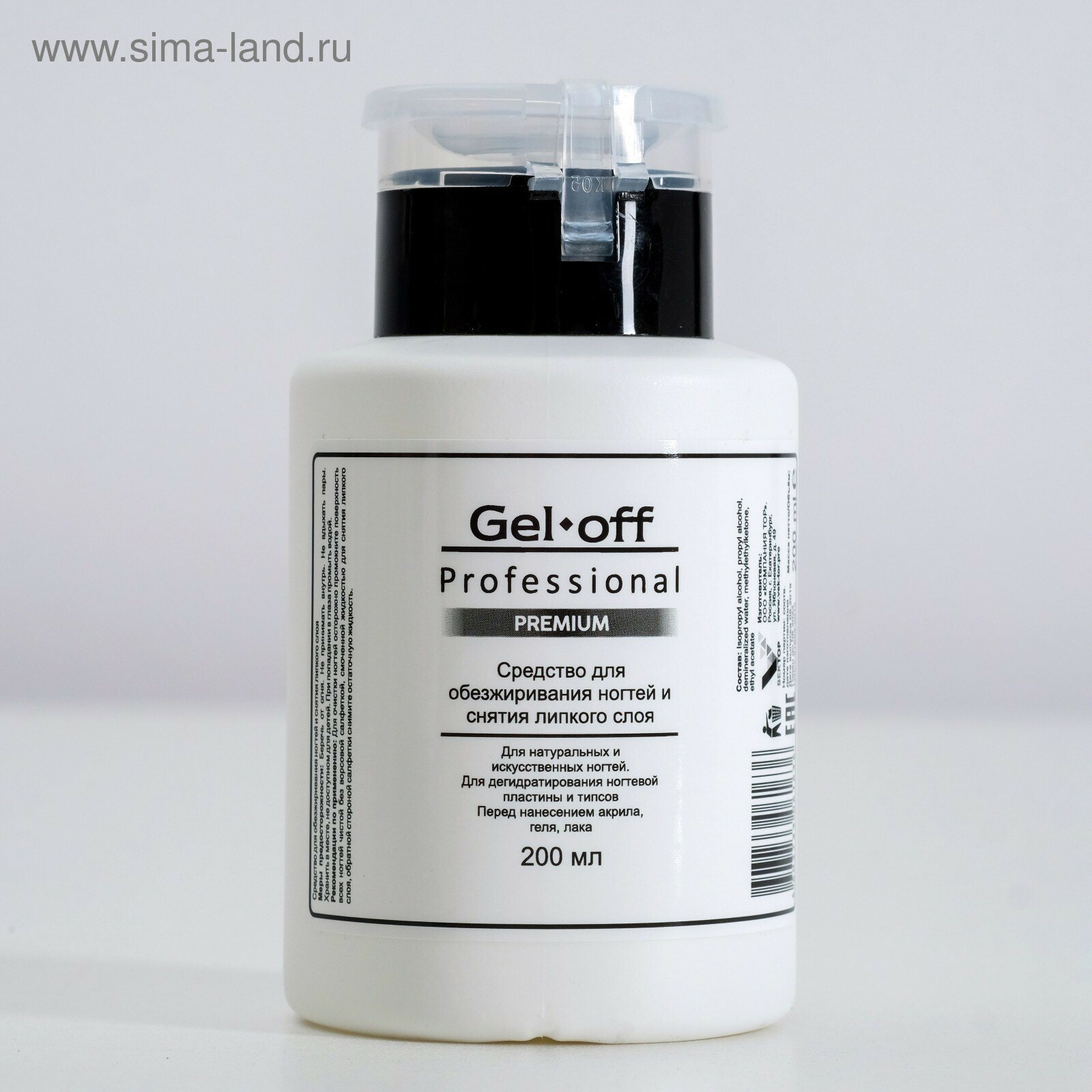 Средство для обезжиривания ногтей и снятия липкого слоя Gel*off Premium Professional, помпа, 200 мл