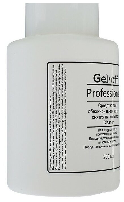 Средство для обезжиривания ногтей и снятия липкого слоя Gel-off Cleaner Professional, помпа, 200 мл, "Gel*off"