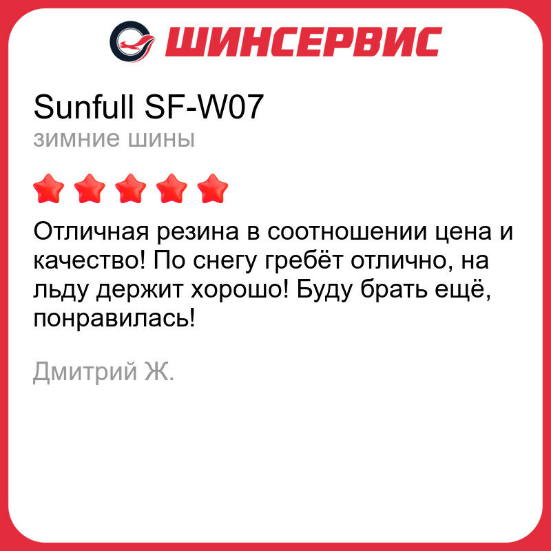 Ниже Вы можете прочитать отзывы на Автошина Sunfull SF-W07 165 R13C 94/92R, ознакомится с подробными характеристиками, посмотреть интересные обзоры и фотографии на Автошина Sunfull SF-W07 165 R13C 94/92R.