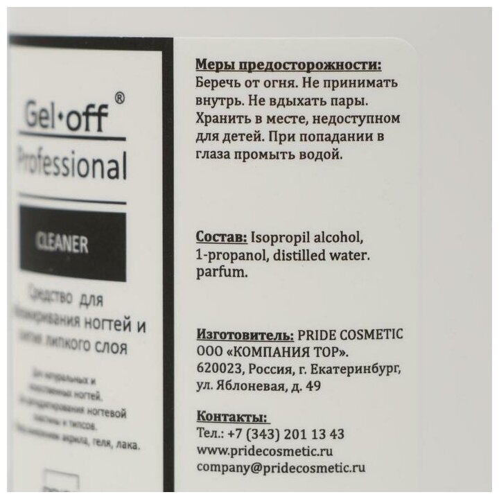 Средство для обезжиривания ногтей и снятия липкого слоя Gel*off Cleaner Professional, 400 мл./В упаковке шт: 1