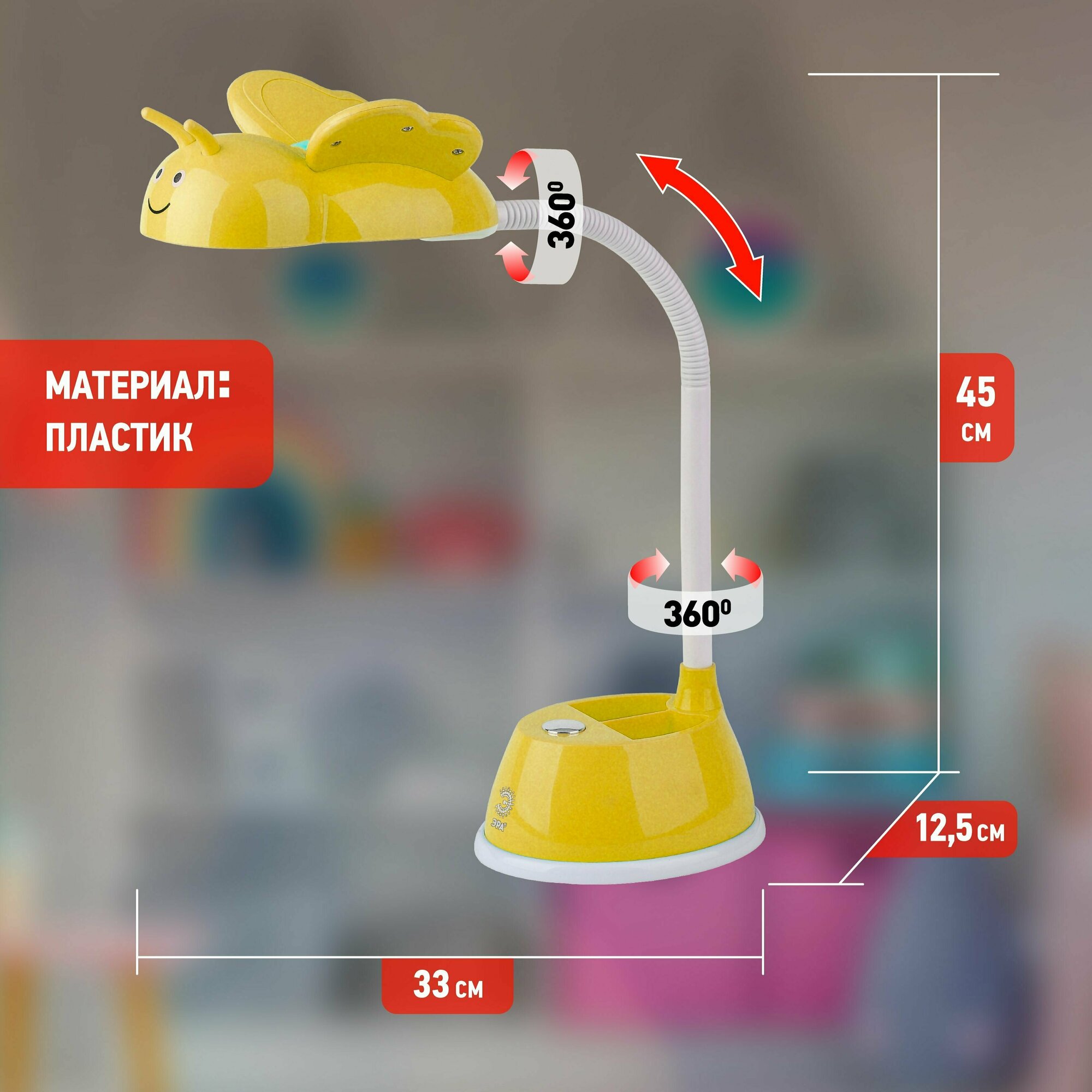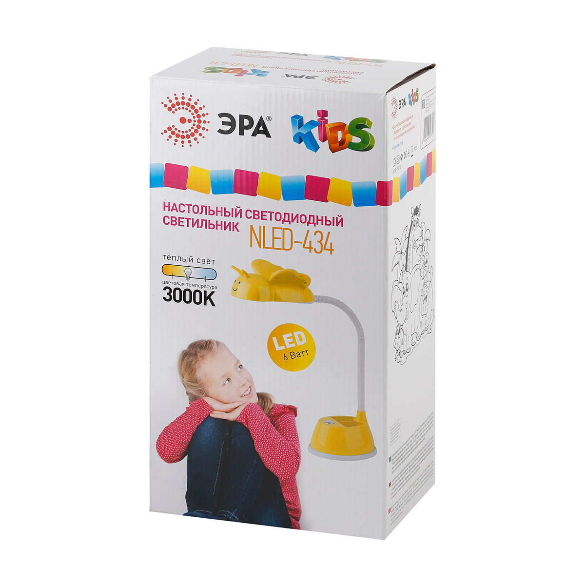 Купить Лампа настольная светодиодная детская для школьника ЭРА NLED-434-6W-Y Пчелка с подставкой для ручек