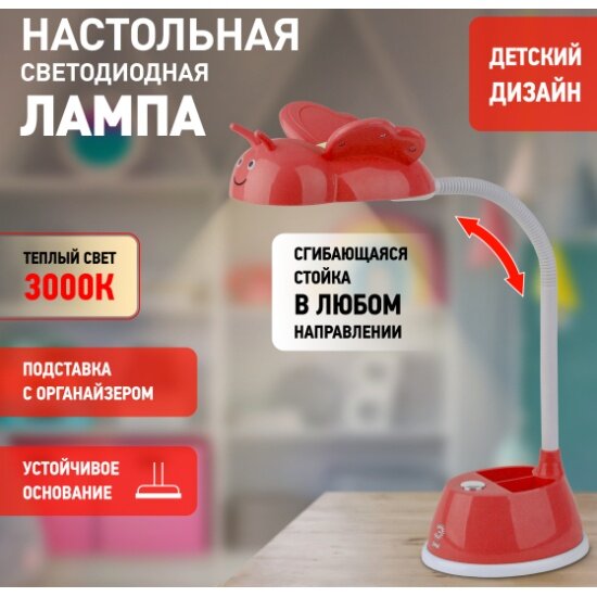 Лампа настольная светодиодная детская для школьника ЭРА NLED-434-6W-Y Пчелка с подставкой для ручек