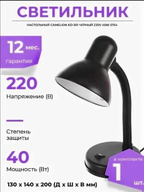 Настольная лампа Camelion KD-301 С02 черный ,230V 40Вт)