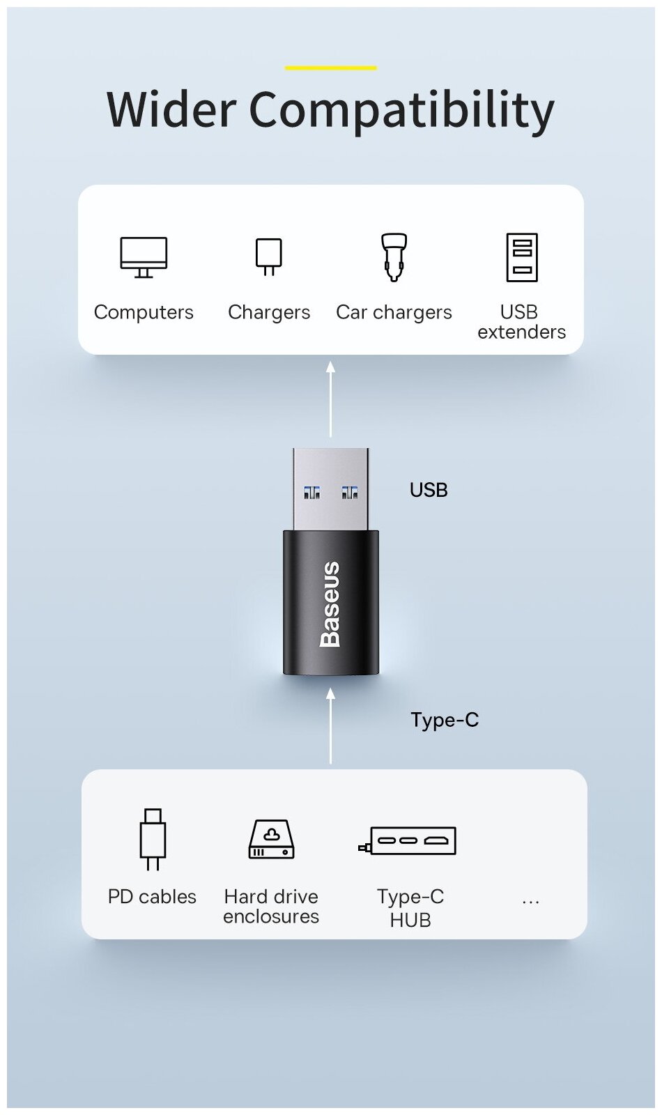 Разъем Baseus Male OTG USB - USB Type-C, 0.01 м, 1 шт., черный