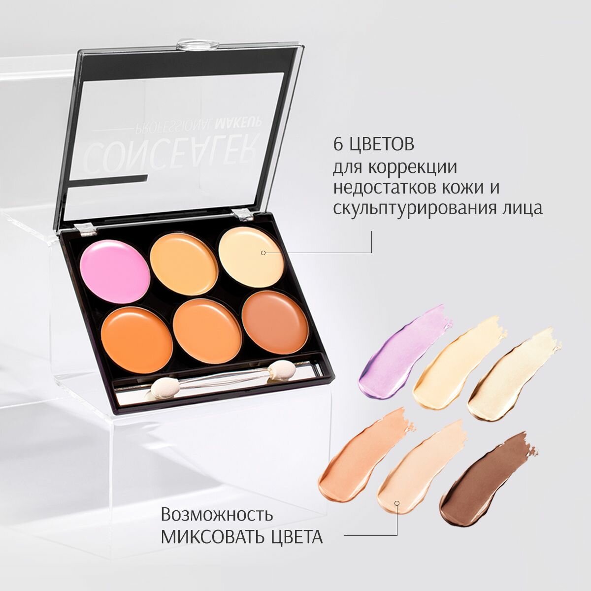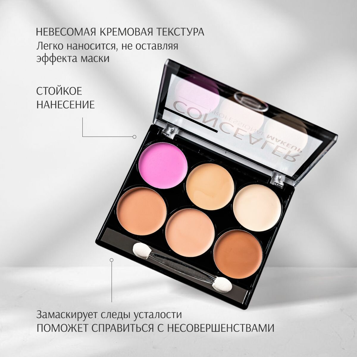 Набор консилеров совершенное лицо / Коллекция 2 / Консиллер + Корректор 6-в-1 / Кремовая текстура